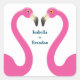Se trata de un Pegatina Boda tropical y divertido acentuado con dos flamencos a punto de besarse, sobre un fondo blanco brillante. Este pegatina se realza con los nombres de la novia y el novio, haciéndolo perfecto como sello para sobres o acento para favores matrimoniales. La colección completa se encuentra en la colección de bodas de la playa Flamingo rosa.