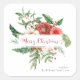 Cuadrada Pegatina Botánica Navideña Roja