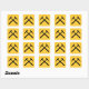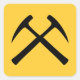 Precaución pegatina amarillo con martillos rocosos negros cruzados.
