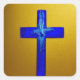 Cruz cian sobre fondo dorado. Creado mediante software de IA.