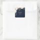 Cuadrada pegatina cuadrado azul marino de flores blancas