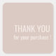 Una etiqueta cuadrada rosa rosa pálido con bordes redondeados con las palabras "GRACIAS por tu compra"