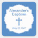 Cuadrada Pegatina cuadrado de bautismo en cruz blanca y azu