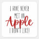 Haz un delicioso "Día Internacional de la Comida y la Manzana" con arte único de Apple impreso en Square Pegatina. Este pegatina ha 'nunca me he encontrado en manzana, ¡no me gusta!' lindo diseño de citas. Puede comprar este pegatina en 2 tamaños diferentes con acabado brillante y mate. 🍎 Comer abundancia de manzanas, mantener el cuerpo sano 🍏