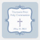 Este pegatina de confirmación de cruz azul cuadrado personalizado es una excelente manera de personalizar de su favor, sellar sus invitaciones o tarjetas de agradecimiento o usar para etiquetas de regalo. Este diseño contemporáneo presenta una cruz azul y tu texto dentro de un marco azul de campo, sobre un fondo azul suave.
