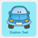 Coche personalizado azul sonriente. Color de fondo personalizado. Texto personalizado.
