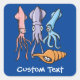 Tres lindos personalizados de calamar y una concha de tritón. Color de fondo personalizado. Texto personalizado.