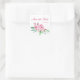 Pegatina cuadrado PERSONALIZADO con flores de PEONY rosa