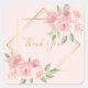 Rosas suaves rosas rosadas gracias pegatina cuadrado por cartas elegantes, regalos románticos, por un hermoso cumpleaños y por pequeños negocios.