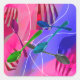 Diseño digital con un fondo de colores brillantes y divertidos con tenedores y cucharas geniales. Diseño de utensilios de cocina divertidos.