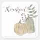 Nuestra popular acuarela de calabaza doble ahora adorna un pegatina cuadrado para regalos, tarjetas y más. Pegatina muestra el mensaje "agradecido". Diseño acuático creado por Night Sky Paperie.