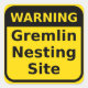 Aviso - Sitio de anidación de Gremlin - pegatina de advertencia humorístico en amarillo y negro, ¡recibe uno para tu servidor favorito!