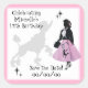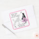 Un pegatina cuadrado, salvo el de fecha, para hacer coincidir nuestra invitación "Poodle Skirt Fun" con una imagen de una joven vestida con falda de perro caniche, un caniche gris claro en el fondo, estrellas negras de los años 50 y un borde rosa. Personalizable. Vea la invitación, sobre, etiqueta de regalo y etiqueta coincidentes. Ver toda la colección de Pegatinas de los años 50 en INVITES | Sección Pegatinas y etiquetas.
