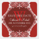 Monograma rojo con bordes de encaje rojos y blancos tribales fractales únicos - Boda, compromiso, aniversario Guardar la fecha pegatina cuadrado de esquina redondeada. Todo el texto puede ser totalmente personalizado, incluyendo el estilo de letra y los colores.