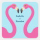 Cuadrada Pegatina de Boda Blue Flamingo Beach