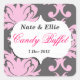 Pegatina de bufés de damasquín rosa y gris. Ideal para bufés de caramelos o mesas de quequitos en bodas, fiestas de cumpleaños, duchas para bebés, Comunión, confirmaciones y mucho más! El diseño presenta el fondo con la huella de damasco rosa en el fondo gris pizarra. ¡Una etiqueta de corchete en blanco es la que más ha elegido!