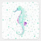 Cuadrada Pegatina de Caballito de Mar en Acuarela