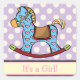 Obtén un regalo divertido y personalizado para el pequeño de tu vida con este dulce caballo balancín azul cubierto en un patrón de corazones rosados y adornado con una corta melena y cola de amarillo y naranja. Una brida verde brillante y una silla marrón con detalles rojos y verdes hacen que este juguete esté listo para montar. Los puntos de polka crema sobre un fondo morado crean un paisaje divertido para este caballo. Personalizar el mensaje en la cinta con el género de tu futura pequeña o un mensaje de tu elección para crear un regalo verdaderamente único para todos los asistentes a tu ducha de bebé. Estos también pueden hacer una gran manera de anunciar el recién nacido a su familia y amigos. No olvide visitar la colección Delightful Hearts Rocking Horse para más regalos y productos para una ducha de bebé o la pequeña de su vida.