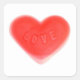 Diseño cuidado con un corazón de caramelos chicle con "amor" escrito en él en tonos rojos y rosas sobre un fondo blanco. Pegatina con un diseño de personalizable para que usted pueda personalizar con su propio texto, imágenes e ideas. Creado usando una fotografía original y técnicas digitales de Jess Perry.