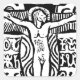 Diseño inspirado en el grabado en madera del crucifijo de Paul Gauguin.