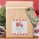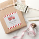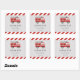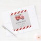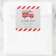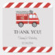 Pegatina cuadrado para cumpleaños con diseño de camión de bomberos y combinación de colores rojos.