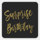 Sorpresa Cumpleaños Negro y Pegatina de Cumpleaños Relieve metalizado dorado. El pegatina de cumpleaños sorpresa utiliza la popular tipografía de Relieve metalizado de oro. Este pegatina se utiliza para sellar los sobres de cumpleaños sorpresa.
