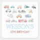 Cuadrada Pegatina de cumpleaños de transporte, Classic Roun