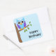 Cuadrada Pegatina de cumpleaños feliz de búho cute