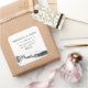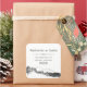 Pegatina de dirección de devolución cuadrada rústica como hermoso accesorio de correo de boda con fondo de papel kraft y fuente decorativa con ilustración de montaña y bosque en la parte inferior