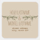 Pegatina de dirección boda con un ilustracion de ramas siempre verdes. Personalice el texto con sus nombres y dirección.