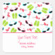 Pegatina de direcciones con un patrón de flamencos rosas, chanclas verdes y gafas de sol rosas y azules.