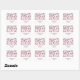 Un pegatina de direcciones con un diseño compuesto por gafas de sol de ojos de gato rosa y negro retro, bolsos de cambio rosa con puntos de polka gris, bolsos de embrague rosado con arco negro, palillos rosados, piedras preciosas rosadas y botella de perfume con atomizador rosa.
