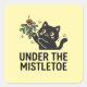 Cuadrada Pegatina de diseño de muérdago festivo para gatos
