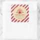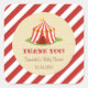 Pegatina cuadrado para ducha de bebé con diseño de carpa de circo y combinación de color rojo.