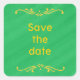 La pintura de un borde amarillo de la Fleur de lis está pintada sobre un fondo mezclado verde de menta de langosta mezclado, con Save the date, en pegatinas cuadrados. Genial para los bodas. Personalizar fácilmente el texto en el cuadro de plantilla. Gracias por comprar en CherylsArt en Zazzle.