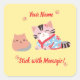 Cuadrada Pegatina de gato kawaii personalizada | Quédate co