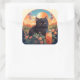 Cuadrada Pegatina de gato negro lindo