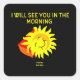 Puedes ordenar mi dibujo de un sol dormido sobre una almohada cómoda, el texto dice: "Te veré por la mañana". Este adorable dibujo hace el regalo perfecto para cualquier ocasión o un regalo para desear a alguien un buen saludo nocturno. Ahora puedes ordenar mi dibujo al que llamo "Buen Sol Nocturno", añadido a este pegatina cuadrado. Puede pedir este pegatina cuadrado en pequeño y grande.