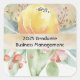 Business Management 2025 Graduation Pegatina en diseño floral. Gracias a los recortes de diseño por algunos de los elementos del diseño. Se pueden cambiar las palabras.