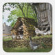 Pegatina de fotos de gansos caminando hacia su casa tradicional de piedra en una granja de gansos de foie gras cerca de Sarlat-la-Canéda en la región de Dordoña, Perigord, Francia.