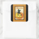 Cuadrada Pegatina de Halloween con calabaza de gato negro v