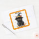 Cuadrada Pegatina de Halloween de Bruja Gato Negro