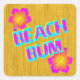 Beach Bum es gracioso diciendo en angustiadas letras de marisco a la deriva en brillantes colores verde azulados y azules del océano con un contorno amarillo arenoso en una alfombra de junco falso con flores de hibisco. Haga clic en Personalizar para agregar su nombre o mensaje, cambiar los colores de fondo y más.