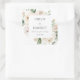 Elegante rosa blanca floral y sabio eucalipto verde cuadrado floral rodea los nombres de novios, un sentimiento de agradecimiento y su fecha boda.