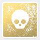 Pegatina cuadrado redondeado con efecto estampado de cráneo dorado. Falso efecto metalizado dorado.