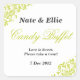 ¡Pegatina de la comida fría del caramelo de la verde lima grande para las comidas frías del caramelo o las tablas de la magdalena en los bodas, las fiestas de cumpleaños, las fiestas de bienvenida al bebé, la comunión, las confirmaciones y las porciones más! Características del diseño swirly un estampado de flores en dos esquinas opuestas.