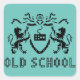 Diseño que representa un escudo heráldico de armas por píxel de arte. El escudo está apoyado por leones desenfrenados. También están las palabras: Escuela vieja. Un pegatina para nerds y geeks