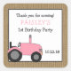 Cuadrada Pegatina de la fiesta de cumpleaños del tractor ro