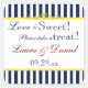 "¡El amor es dulce! ¡Por favor, tómate un trago!" es el texto de este pegatina marinero de estilo moderno y asequible de 1,5" cuadrado con forma de mariscos azules y blancas rayas dulces bufandas de boda con un pergamino amarillo en la parte superior y con letras rojas y navales que coinciden con la invitación a la boda que se muestra a continuación. Hay otras formas y tamaños que puede elegir. ****Tenga cuidado si cambia la forma del pegatina, ya que partes del diseño y/o texto pueden cortarse ya que el límite seguro para el texto es bastante grande. Si cambias las fuentes, también pueden extenderse al límite seguro, por lo que es mejor que me contactes para hacerte otra forma. Si necesita ayuda, envíe un correo electrónico a niteowlstudio@gmail.com.