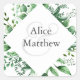 Suave pegatina boda de follaje de invierno con elegante letra. Nuestra colección de follaje de invierno cuenta con una hermosa y suave vegetación acuática en tonos verdes y un toque amarillo. Esto puede ser una colección de su elección para el invierno, pero también una boda elegante de primavera.